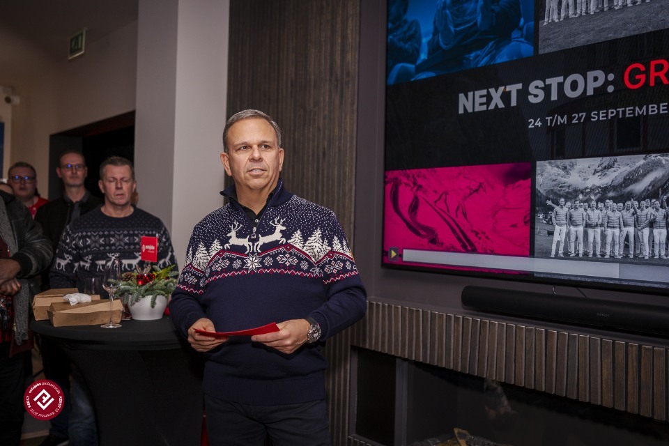 Twintig Professionals die deze reis met ons mochten maken. Terwijl de beelden voorbij kwamen, was het stil in de zaal. Blikken die verraden dat momenten opnieuw werden beleefd. Trots. Verbondenheid. Deze groep is hecht — en dat voel je. Dat samen terugzien, midden in deze avond, gaf het moment extra lading.
